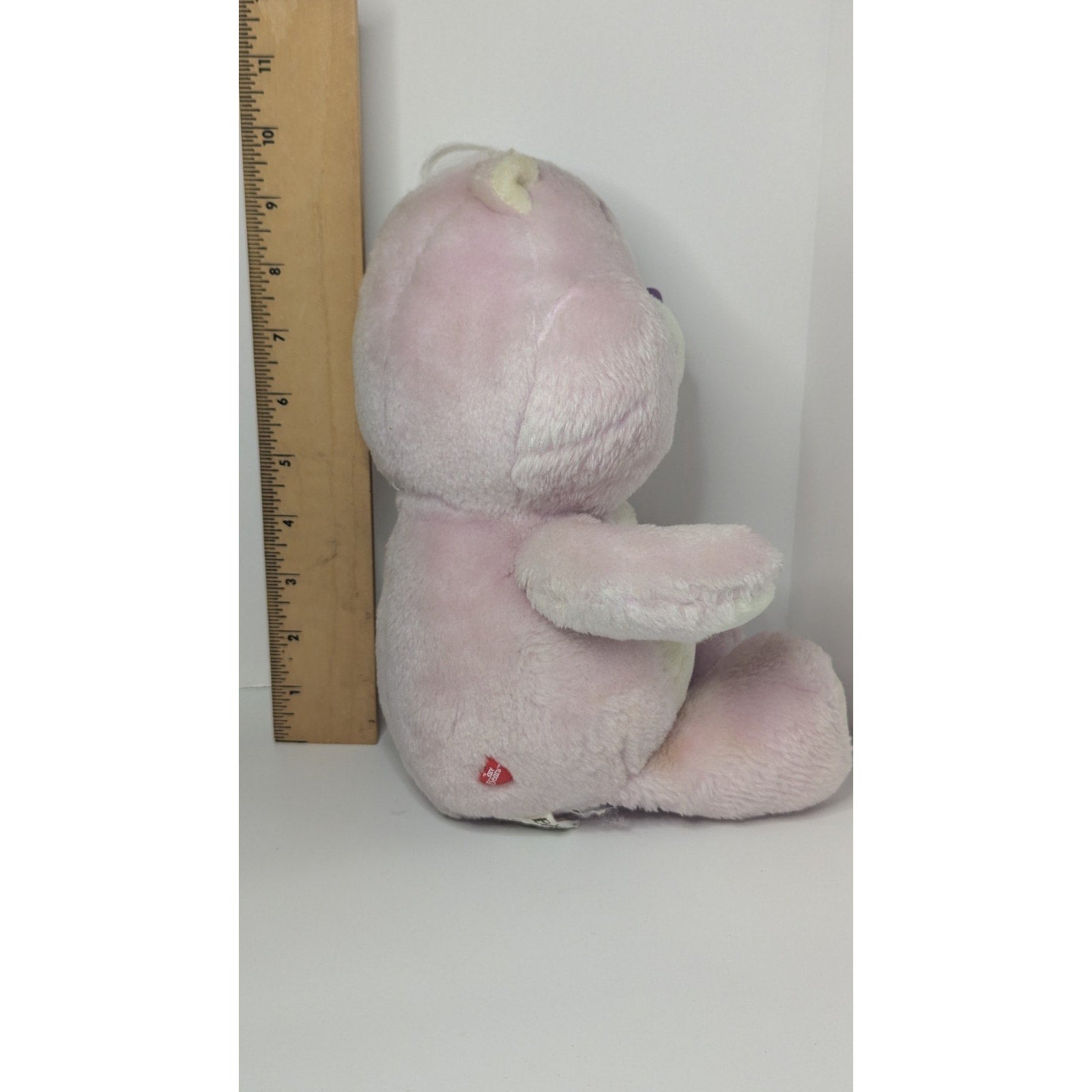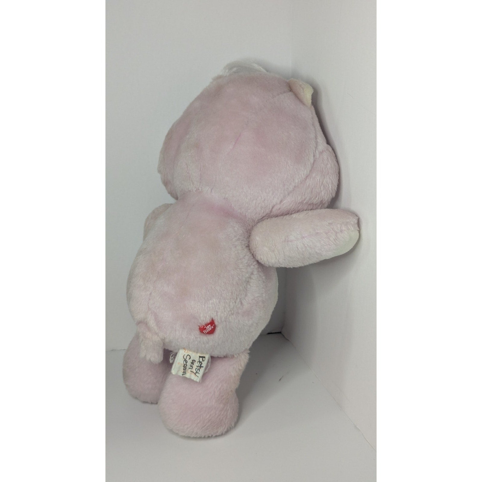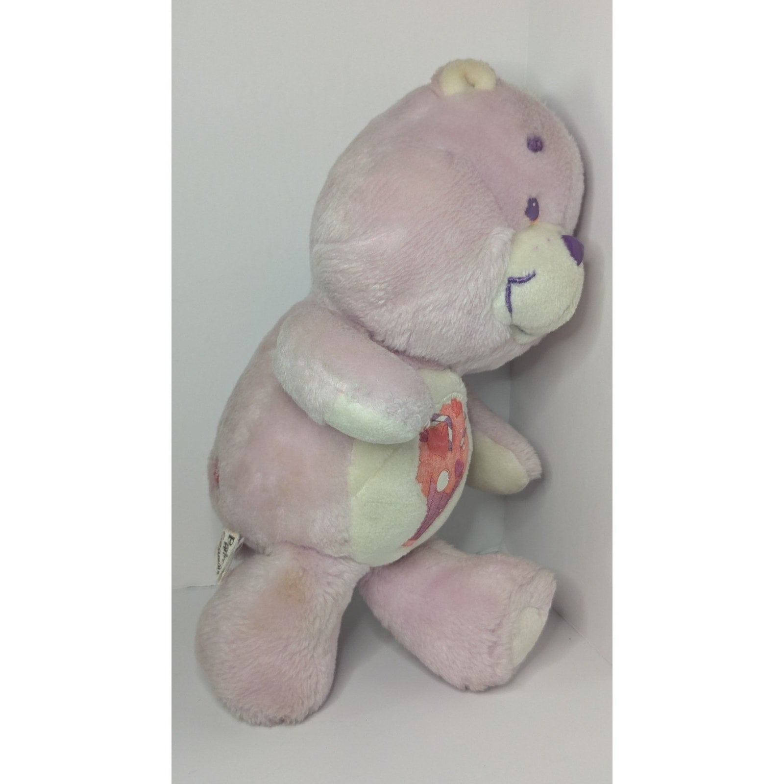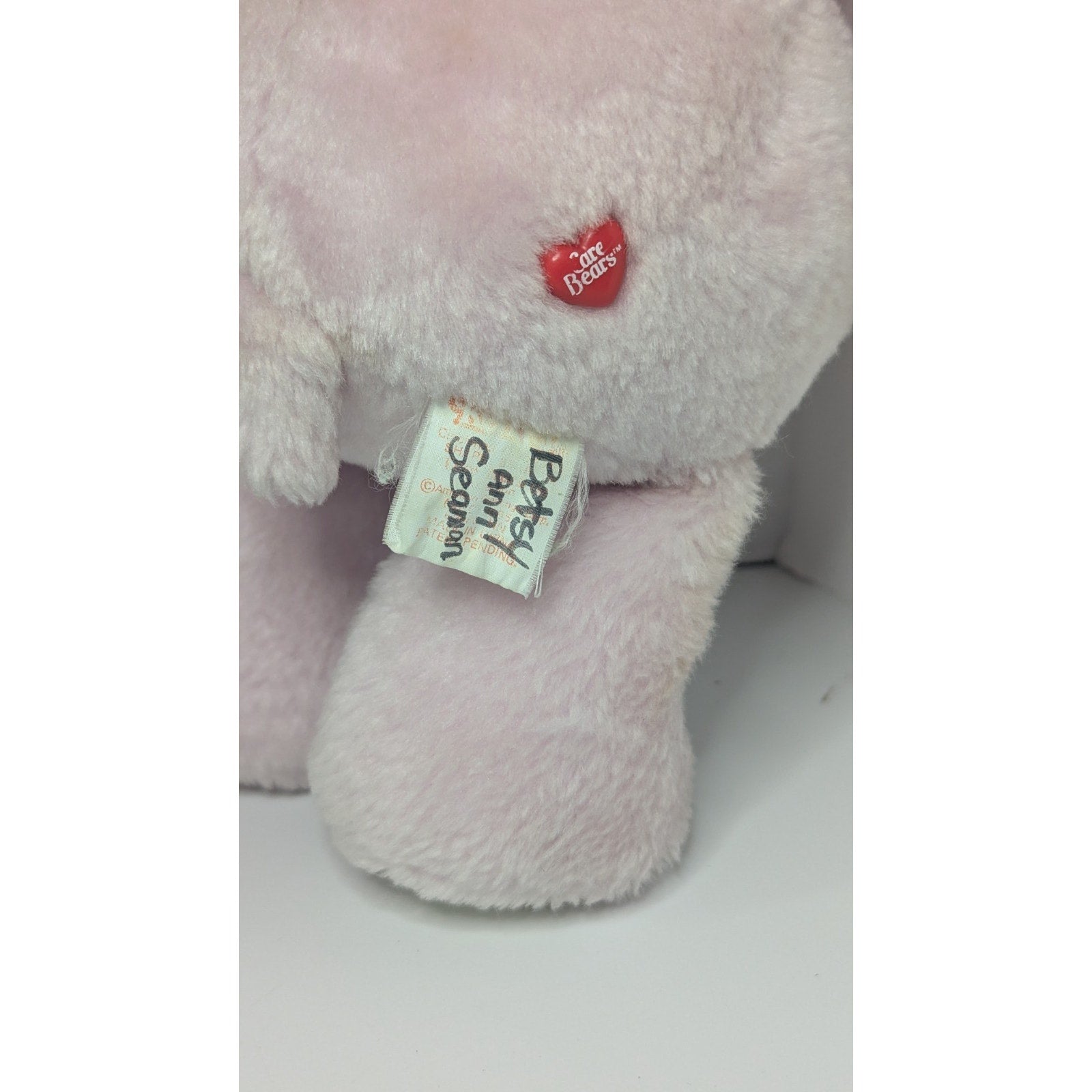This is a vintage Share Bear plush from Kenner, it measures about 13" tall. There are some small spots of discoloration and the tag has a name written on it, both shown in the photos. The belly tag is in great shape.