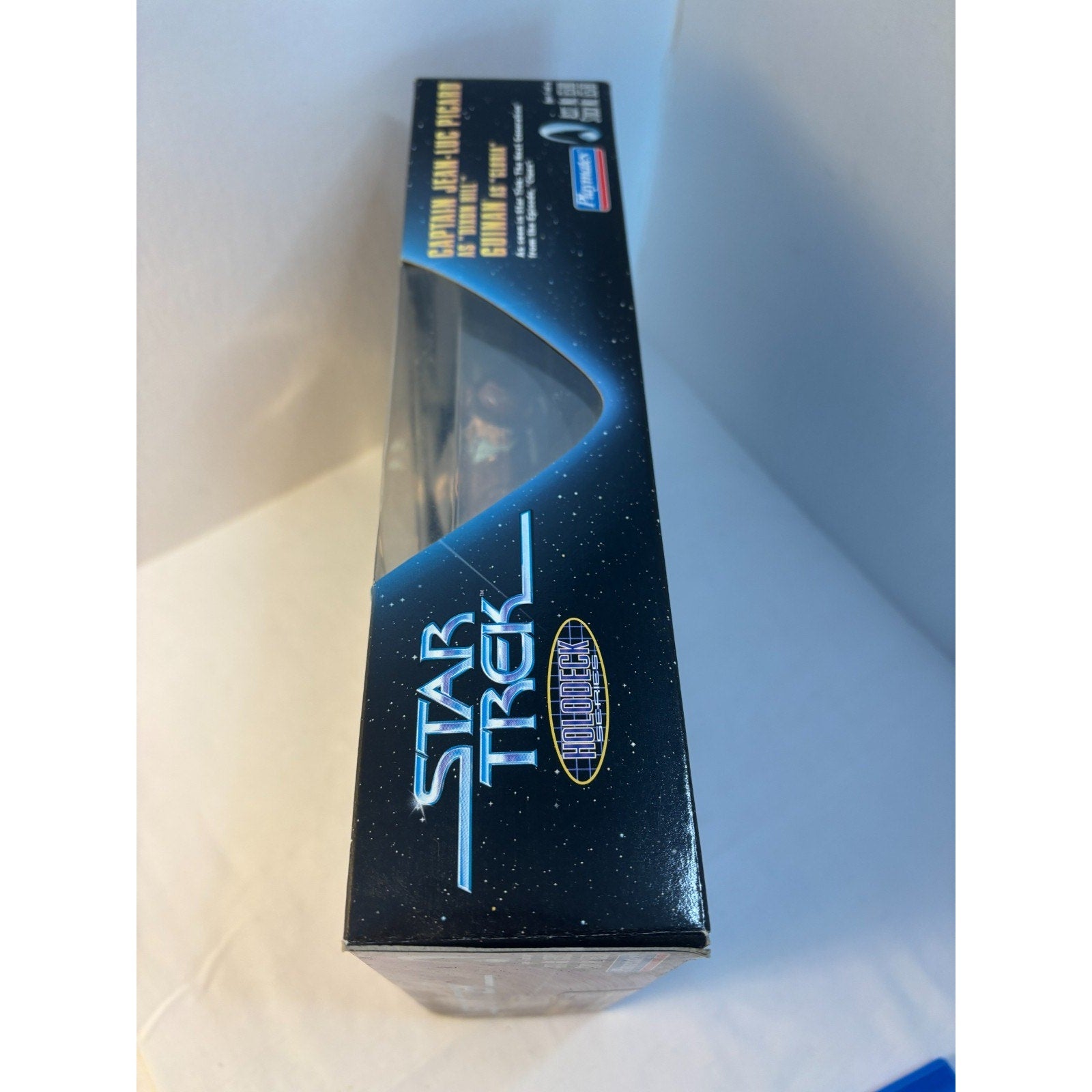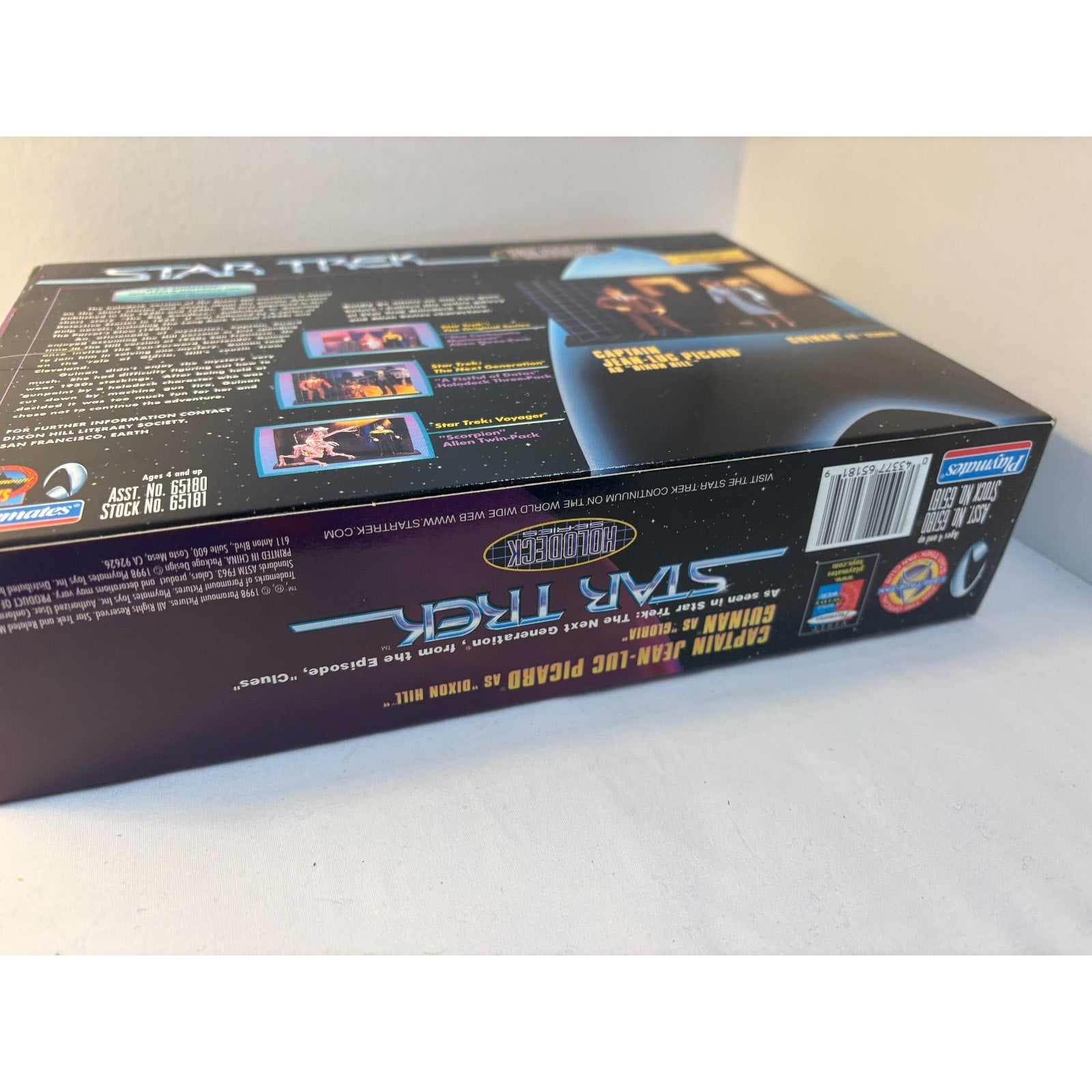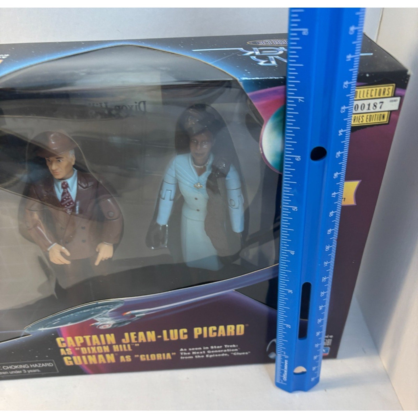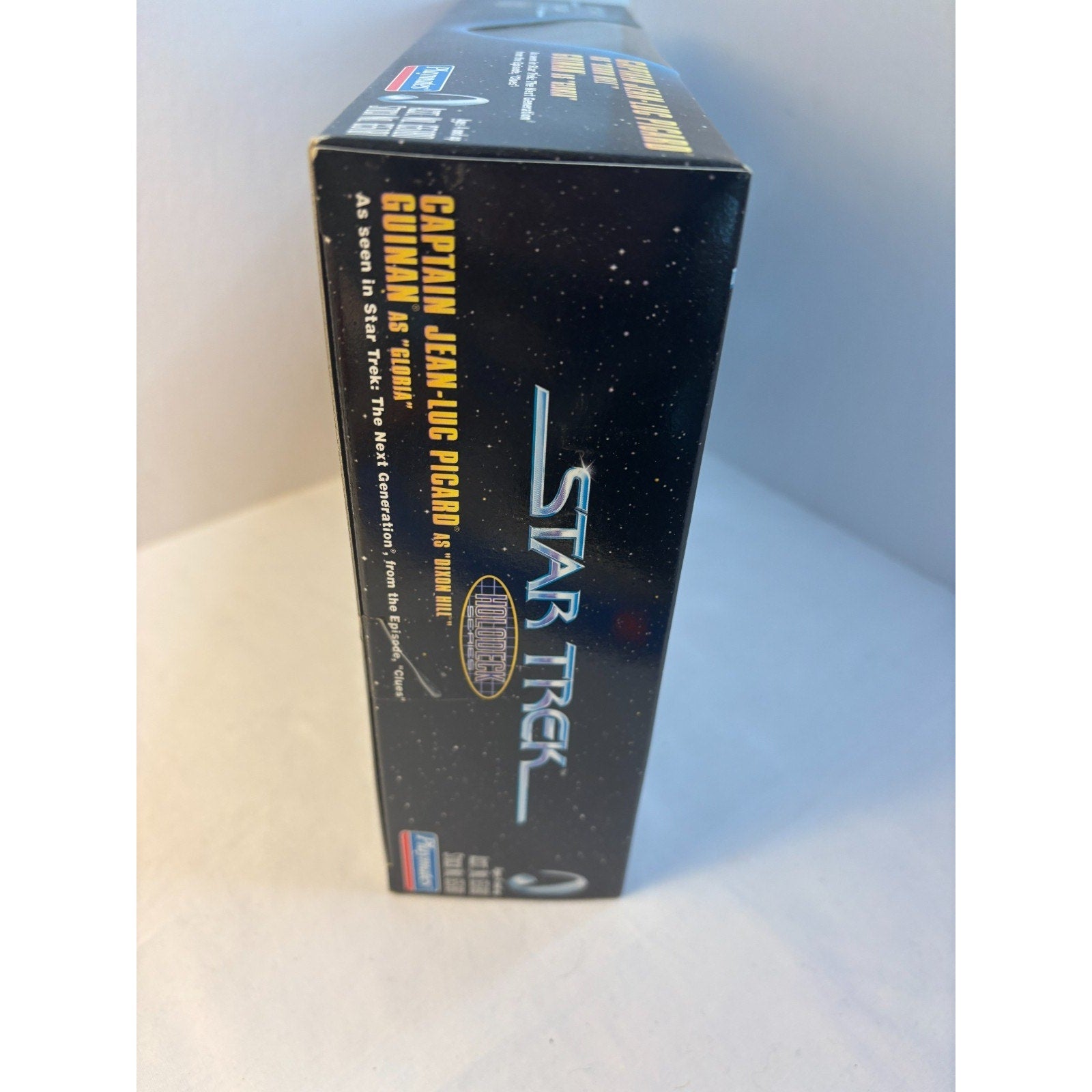 1998 Playmates Star Trek Captain Picard as Dixon Hill & Guinan as Gloria Figure Set. Box is open but items inside are complete and in new condition. Box size is 10 x 7.5 inches.