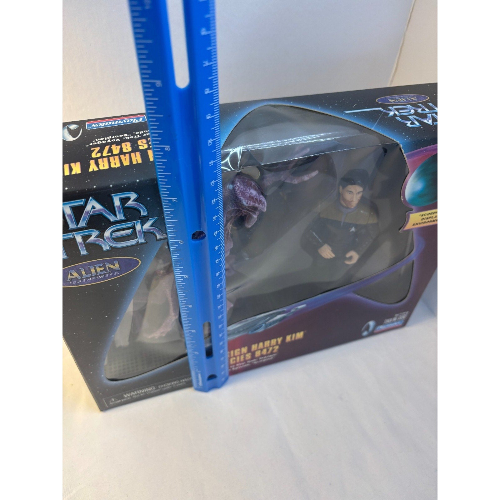 1998 Playmates Star Trek Voyager Alien Series Figure Set with Ensign Harry Kim Species 8472. Box is open but items are complete in in new condition. Box is approx 10 x 7.5 inches.