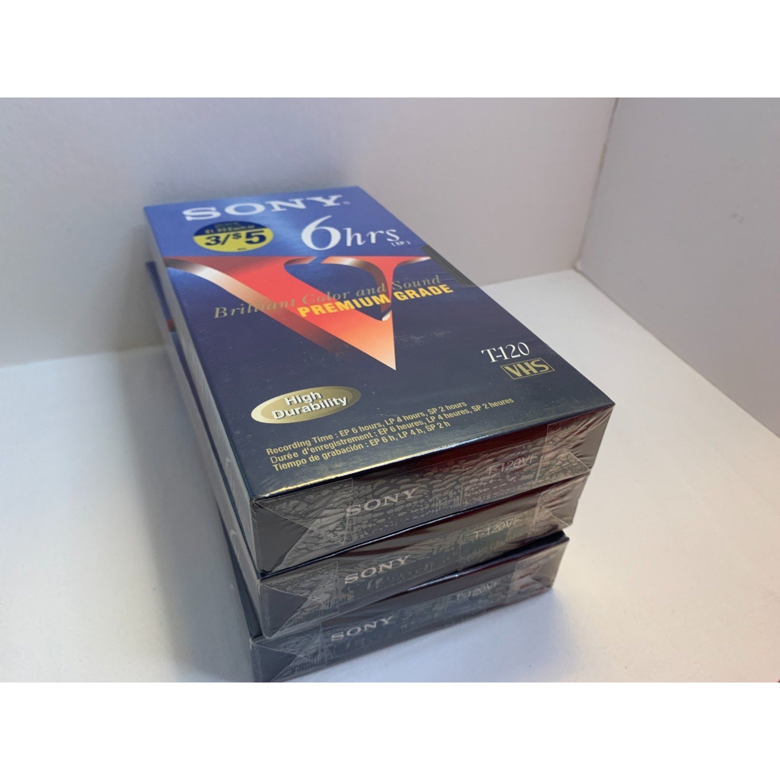 Lot of 3 Sony 6HR Blank High Quality VHS Tapes NEW SEALED T-120VF Premium Grade