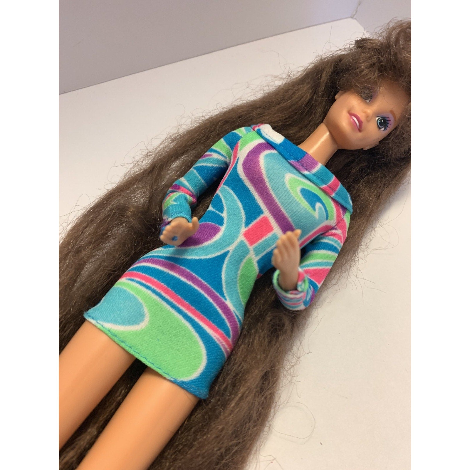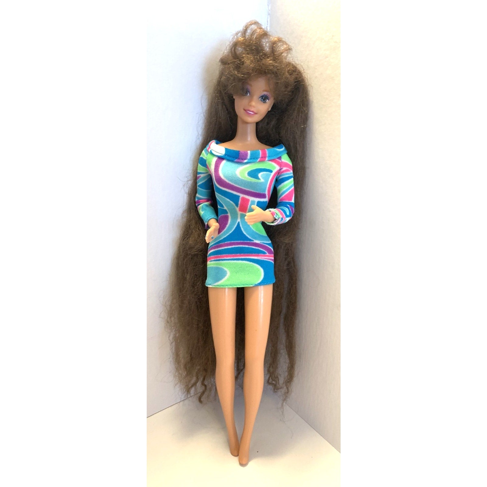 Mattel Totally Hair Barbie 1991 Brunette Long Hair w/ Outfit & Ring 1117