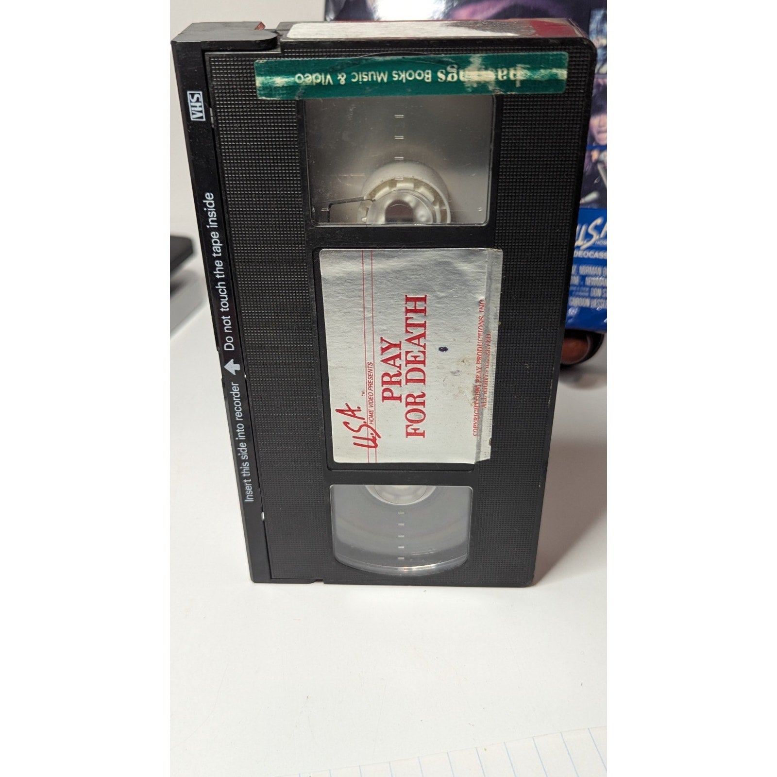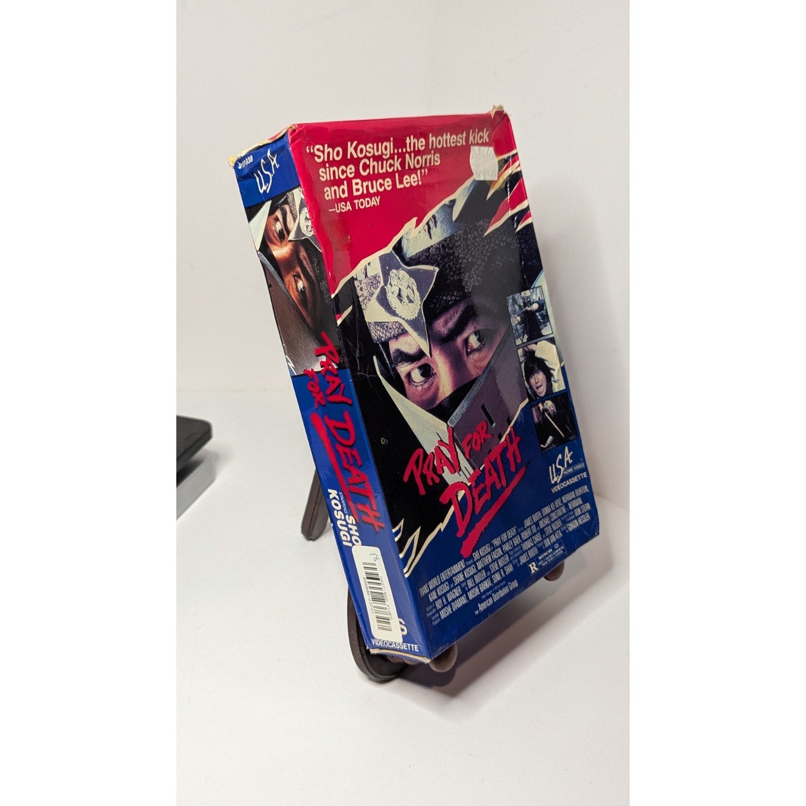 Big box VHS copy of Pray For Death from USA Home Video. Box has some wear, was a previous rental.