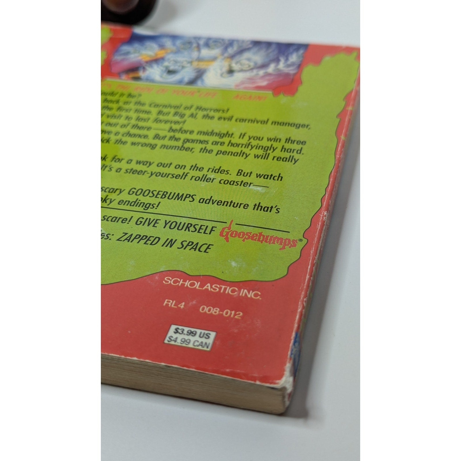 This is a first print copy of Give Yourself Goosebumps #22 Return to The Carnival of Horrors. The cover has some wear and there is a name marked through on the inside cover.