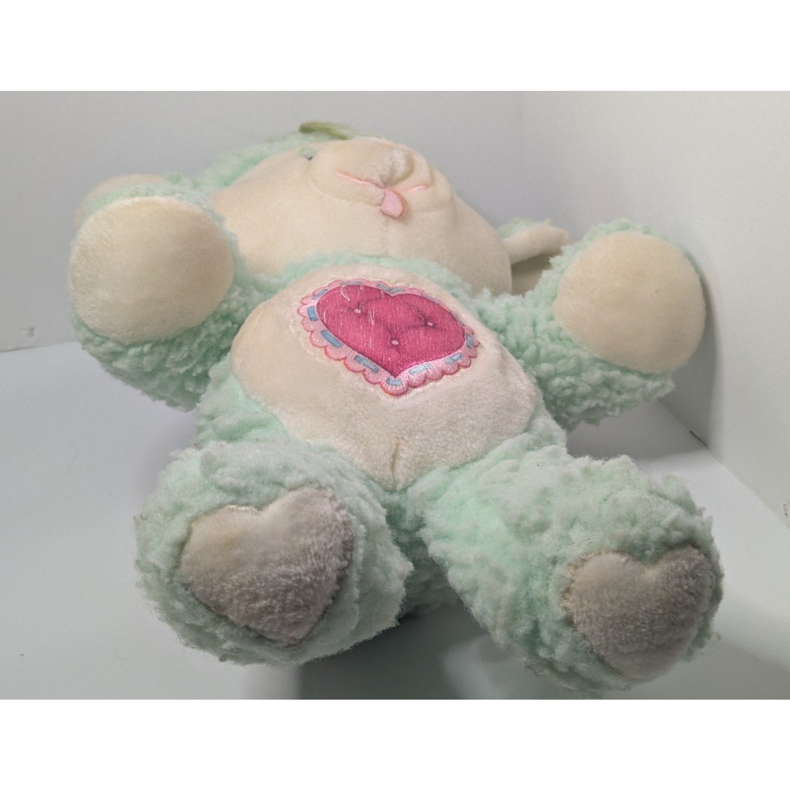 This is a vintage 13" Gentle Heart Carebear Cousin plush. It is in used condition and has plenty of wear from being played with.