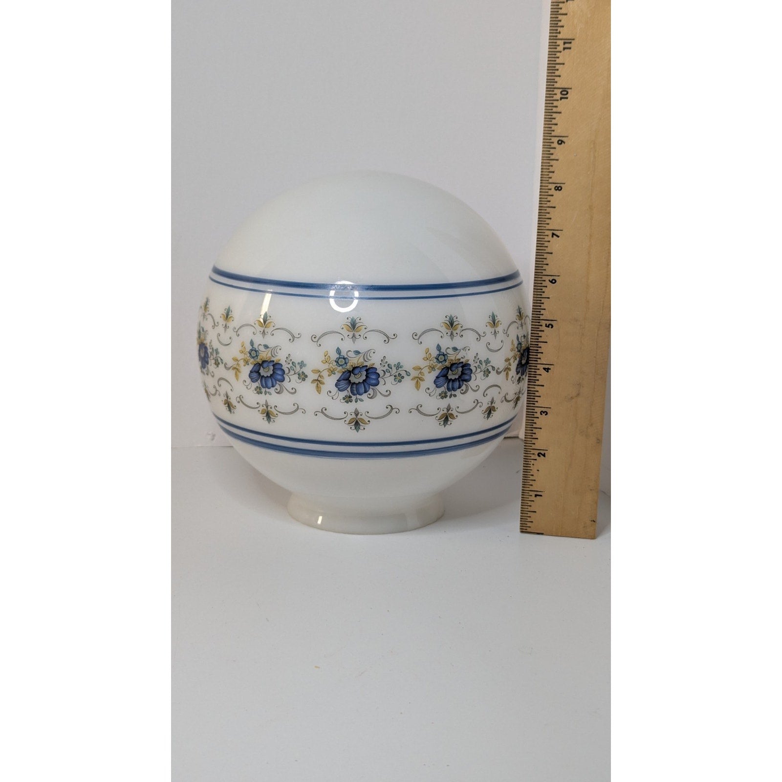 Vintage 8" Quoizel Abigail Adams Blue & White Glass Globe Shade w/ 4" Fitter
