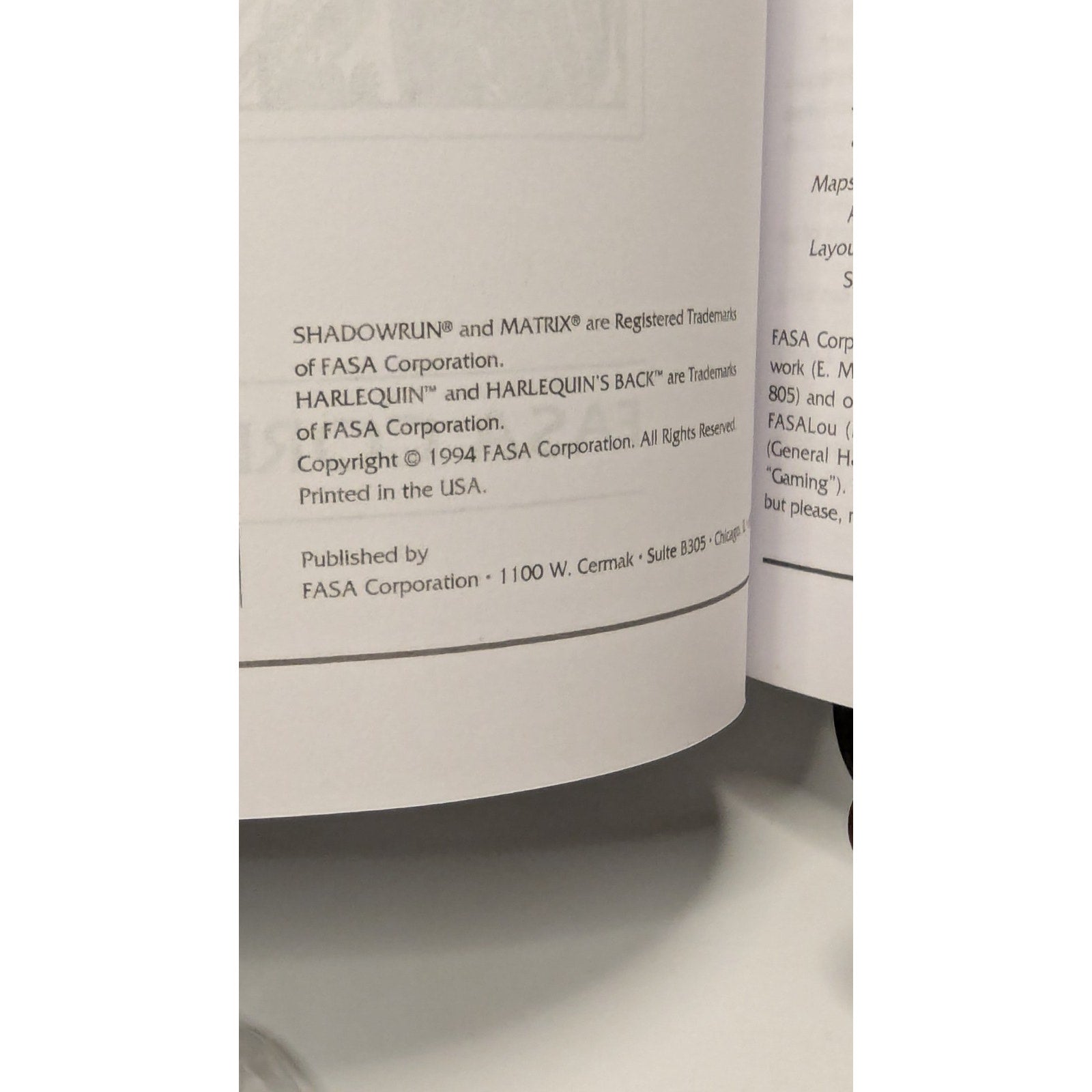 Vintage FASA Corp. Shadowrun Sourcebook for the Harlequin's Back Adventure. For use with 2nd Edition Shadowrun Games.