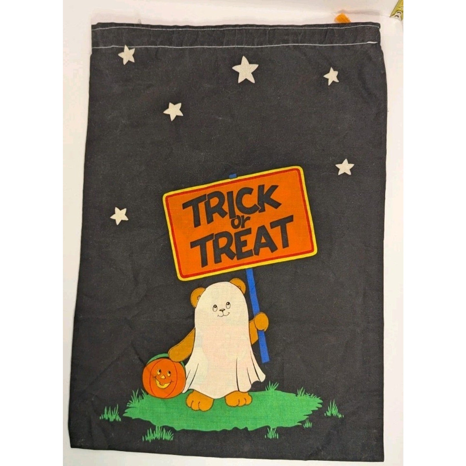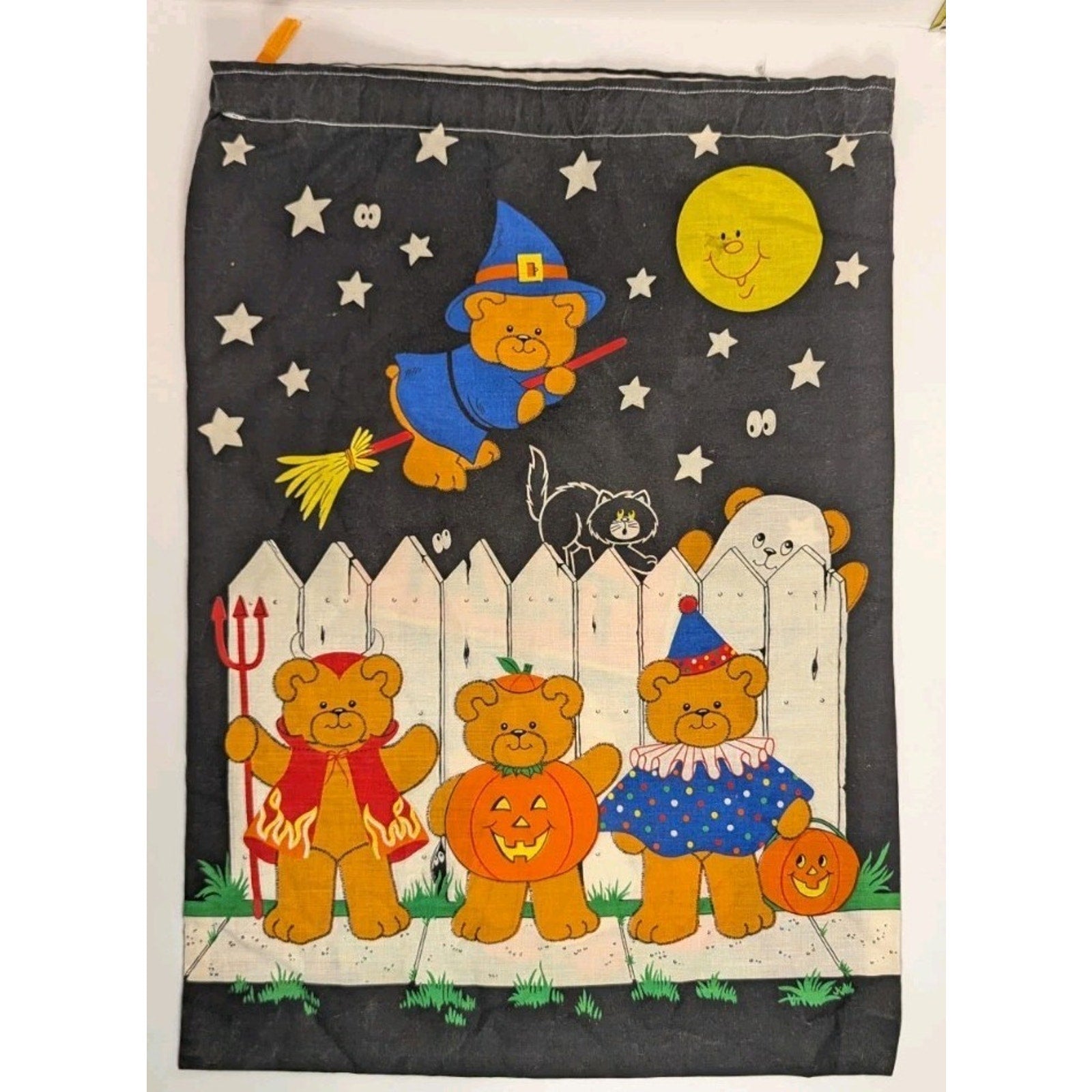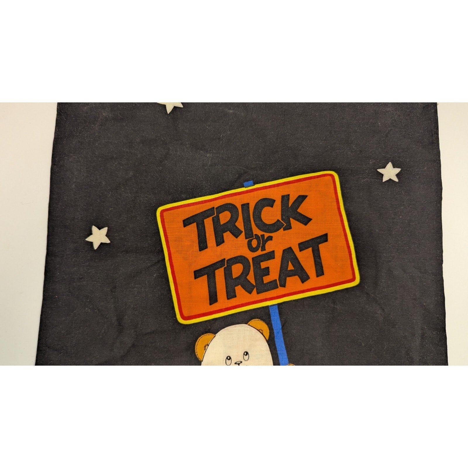 Vintage Trick or Treat drawstring candy bag with adorable bears in costumes. 20 inches long and 14.5 inches wide.