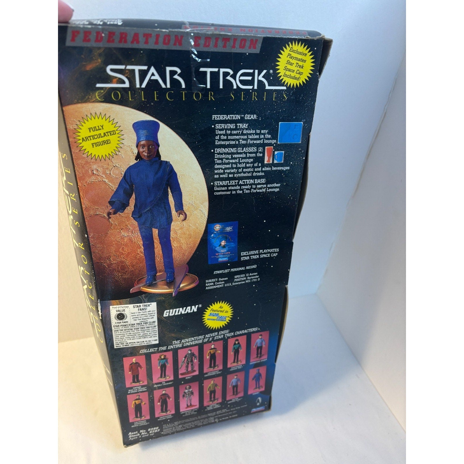 Vtg STAR TREK GUINAN Federation Collector Series Playmates 9" 1995 Whoopi Figure. Still sealed. Box is approx 12 inches tall. Box is not in mint condition, has some warping and edge wear.